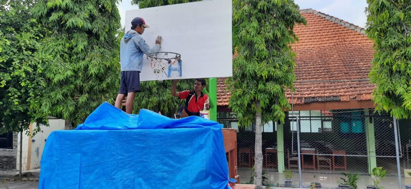 di masa pandemi ini. sekolahan sepi tapi dimanfaatkan untuk merenofasi bangunan-bangunan yang ada di dalam lingkungan sekolahan tak terkecuali lapangan olahraga yang di persiapkan untuk anak-anak nanti kalau sudah masuk sekolah.